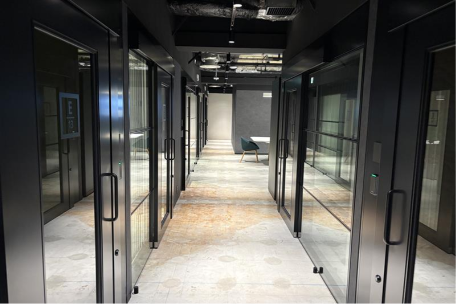 個室とタッチダウンデスクがある、有料会員用の執務室です。またフォンブースやつながりをもたらすラウンジスペースなどで構成されています。